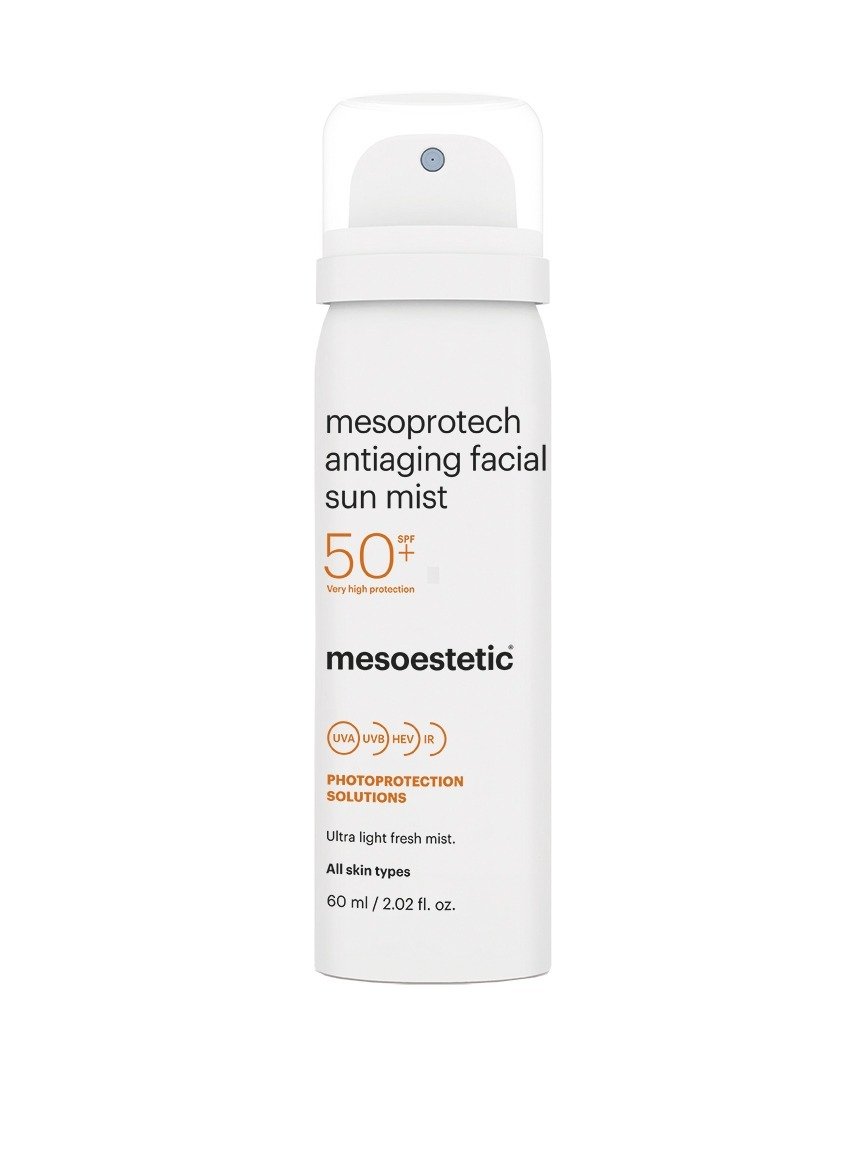 Mesoprotech Antiaging Facial Sun Mist met beschermingsfactor SPF 50+ is een onzichtbare mist voor het gelaat die een hoge bescherming biedt tegen de zon. De mist verhoogt de aanwezigheid van collageen en bevat chemische en biologische filters. Geschikt na make-up. Het product is geschikt voor alle huidtypen. Praktisch, klein formaat om mee te nemen, ideaal voor buitenshuis. Product dat een aanvulling vormt op de rest van de gezichtsproducten: touch-up applicatie.