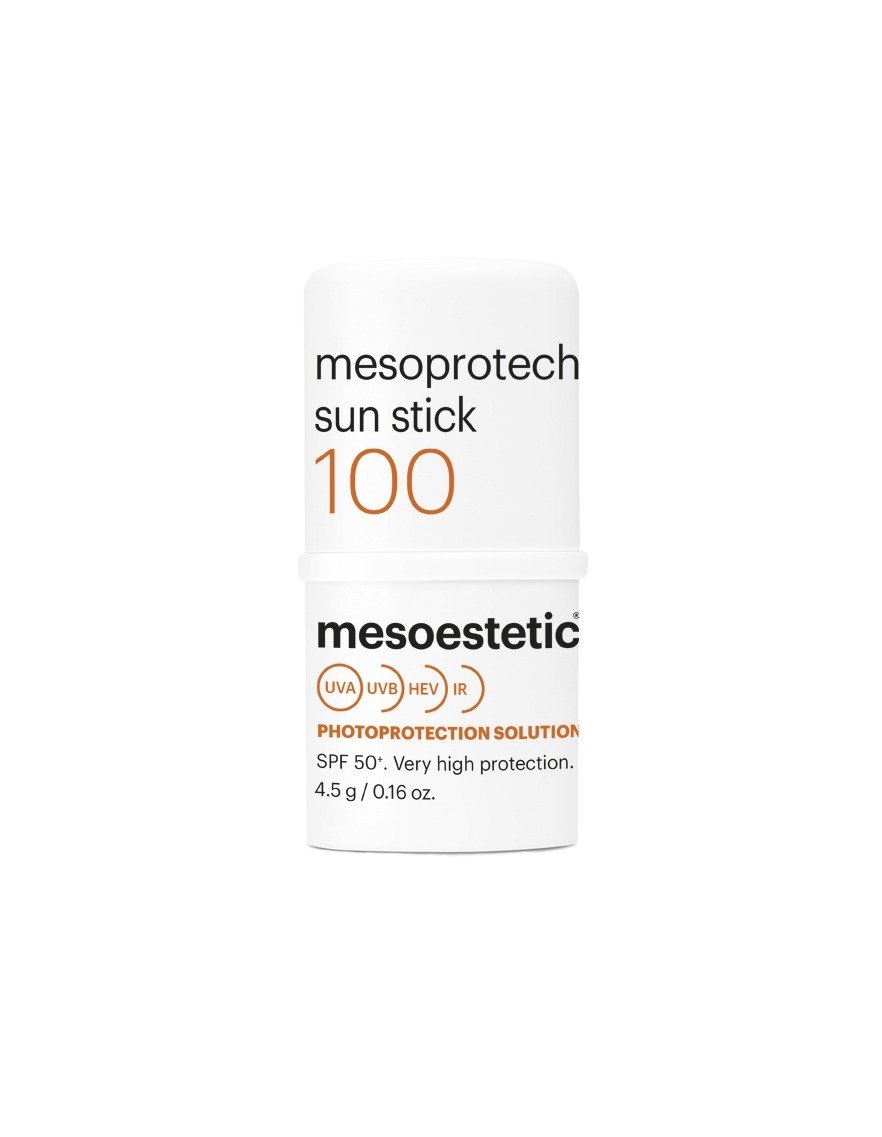 Mesoprotech Repairing Stick SPF 100+ is speciaal ontwikkeld voor gevoelige zones. De stick is niet alleen geschikt voor oogcontour en lipbescherming, maar ook voor littekens en pigmentvlekjes. Biedt twee keer zoveel bescherming als de minimaal vereiste bescherming van een SPF50+ zonnebrandcrème. Het product bevat rozenbottelzaadolie om de regeneratie en genezing van de huid te bevorderen. Oftalmologisch getest. Parfum-vrij.